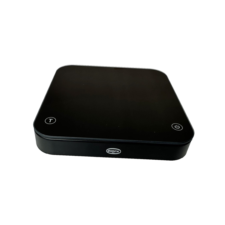 Een perfecte digitale weegschaal met Quick Mill logo. Ideaal om je koffiebonen af te meten en je doorlooptijd te bepalen. Het weeggedeelte is van glas en voorzien van anti-slip matje. Verder is de weegschaal van ABS kunststof gemaakt. De weegschaal meet op 0,1 gr precies en beschikt over een timer functie. Het werkt met ’touch screen’ buttons en LED display.